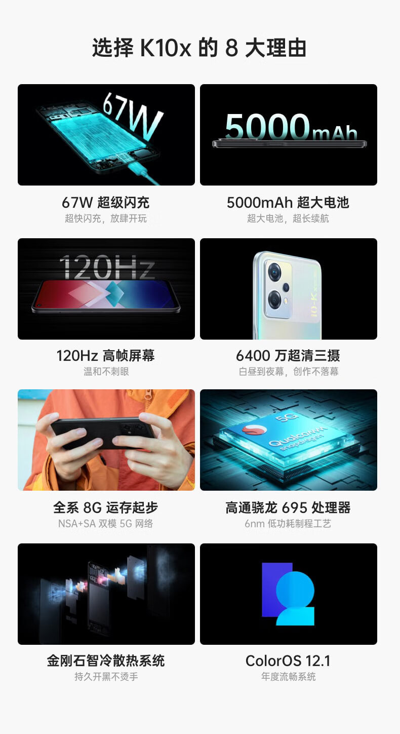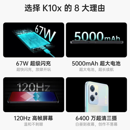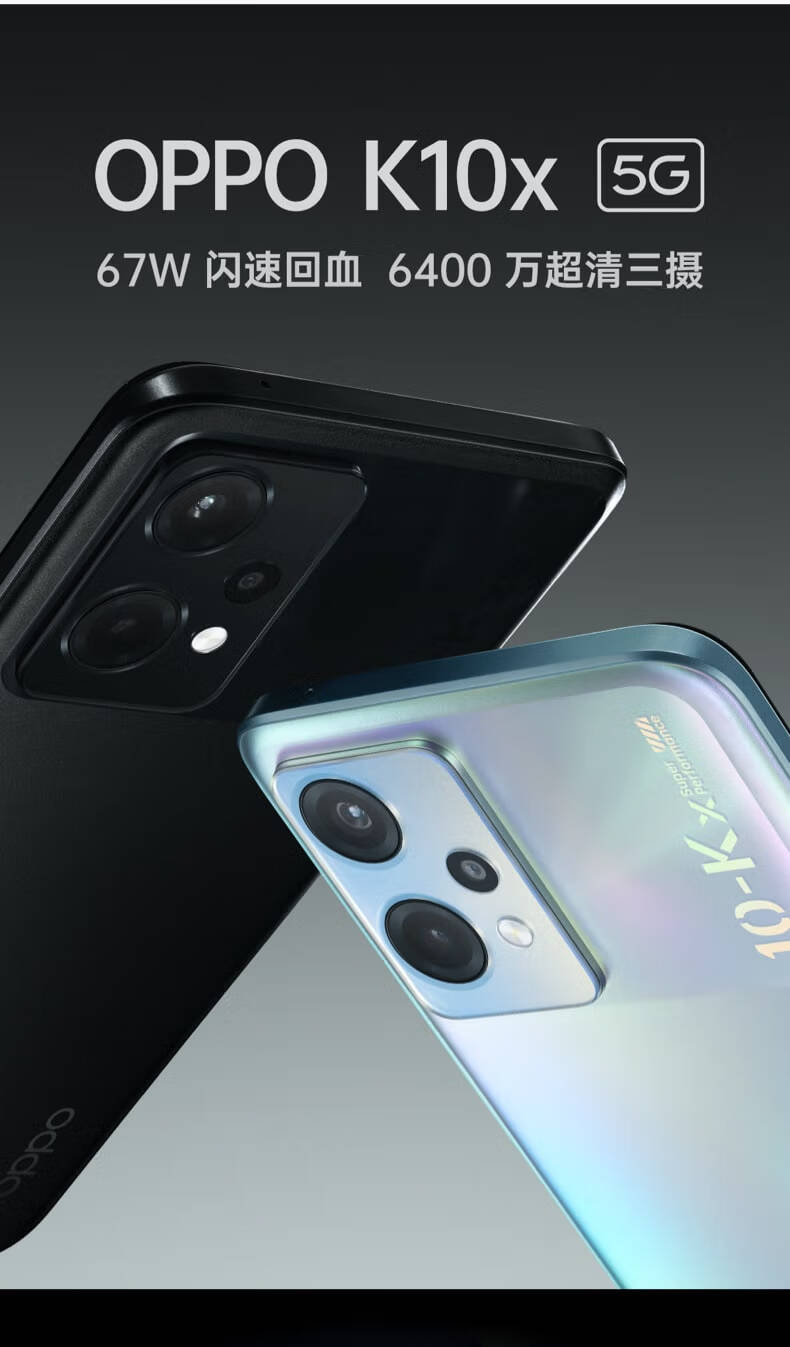 OPPO K10x 极光 8GB+256GB 67W超级闪充 5000mAh长续航 120Hz高帧屏 6400万三摄 高通骁龙695 拍照 5G手机
