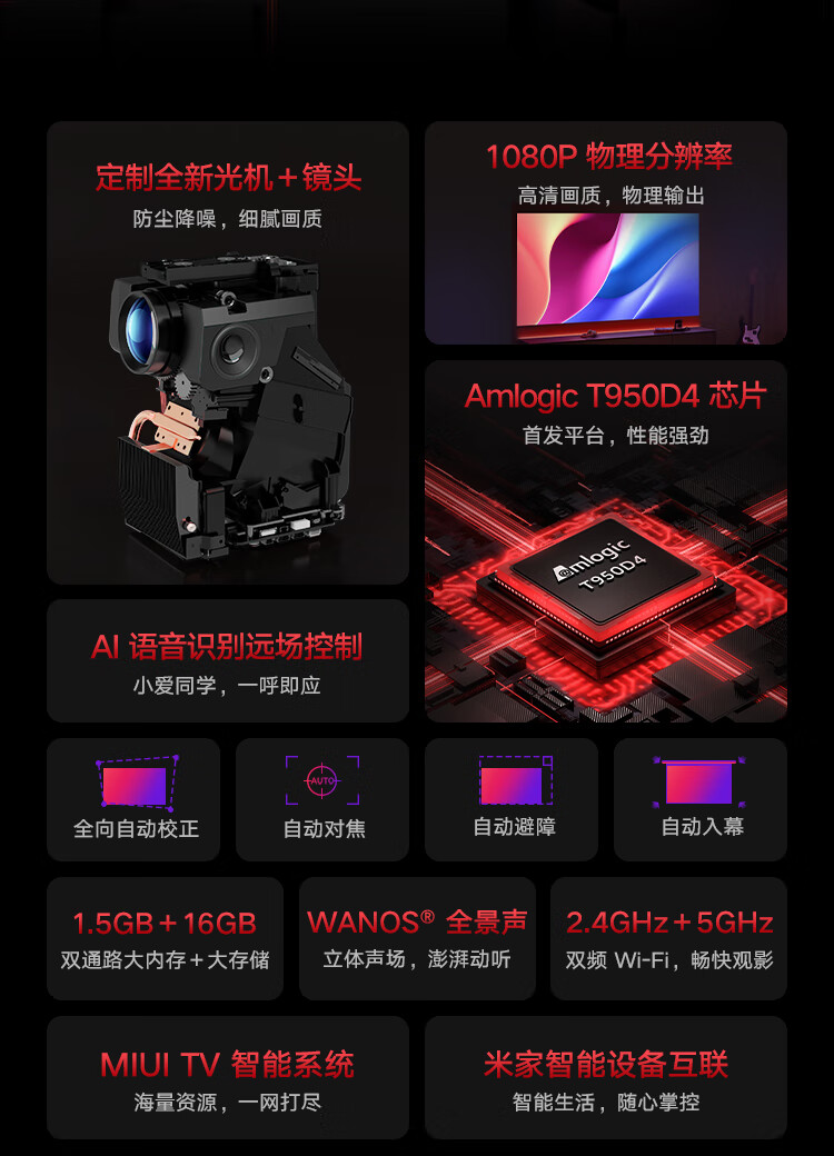 小米 Redmi 投影仪 Pro 家用投影机 智能家庭影院(1080P物理分辨率 全向自动校正 自动避障 米家智能 )