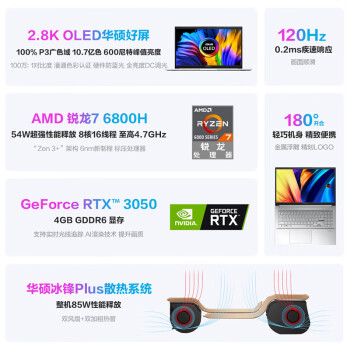 华硕无畏Pro15 2.8K 120Hz OLED屏新锐龙标压游戏轻薄笔记本电脑(R7-6800H 16G 512G RTX3050高色域)银